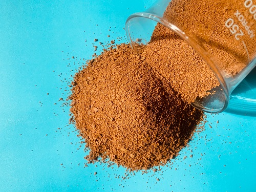 2、固态产品为棕褐色,红褐色粉末,极易溶于水。